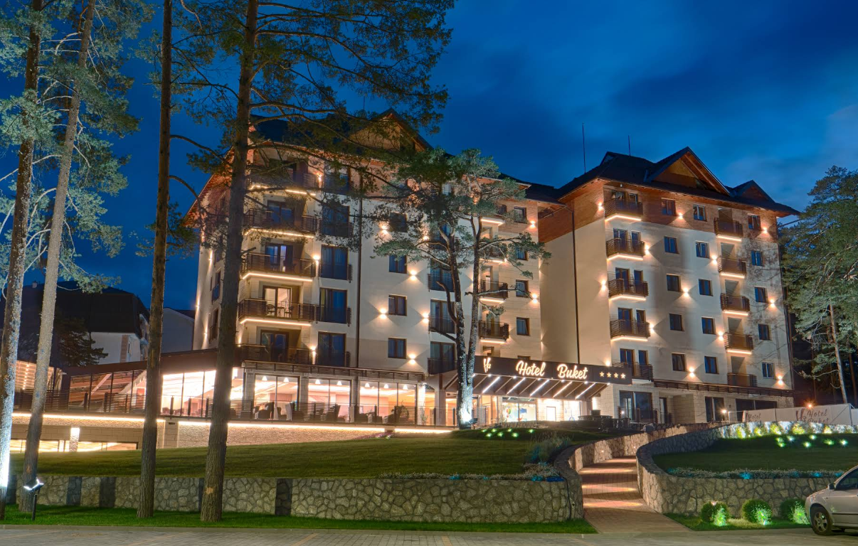 Hotel Buket 4* je smješten 100 metara od centralnog jezera na Zaltiboru u borovom šumarku što hotelu daje dodatnu draž. Hotel posjeduje Spa centar ( zatvoreni bazen, hidromasažna kada, tople klupe, slana soba, parno kupatilo, finska i bio sauna, fitness sala ) čije je korištenje uključeno u cijenu smještaja i otvoren je svakodnevno u periodu 09:00 – 21:00h ( djeca do 12 godina do 18:00h ). Hotel posjeduje parking koji je za goste hotela besplatan.